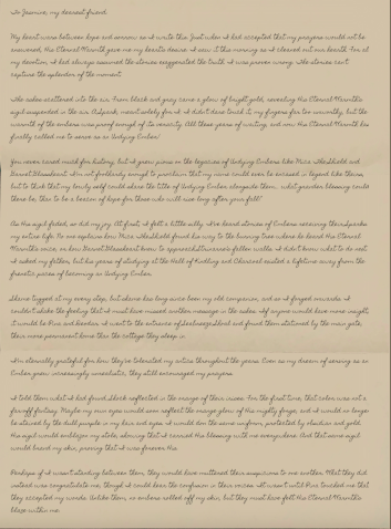 Additional notes: Was originally found burnt, like most of Spica’s writings. The letter has been recreated here.